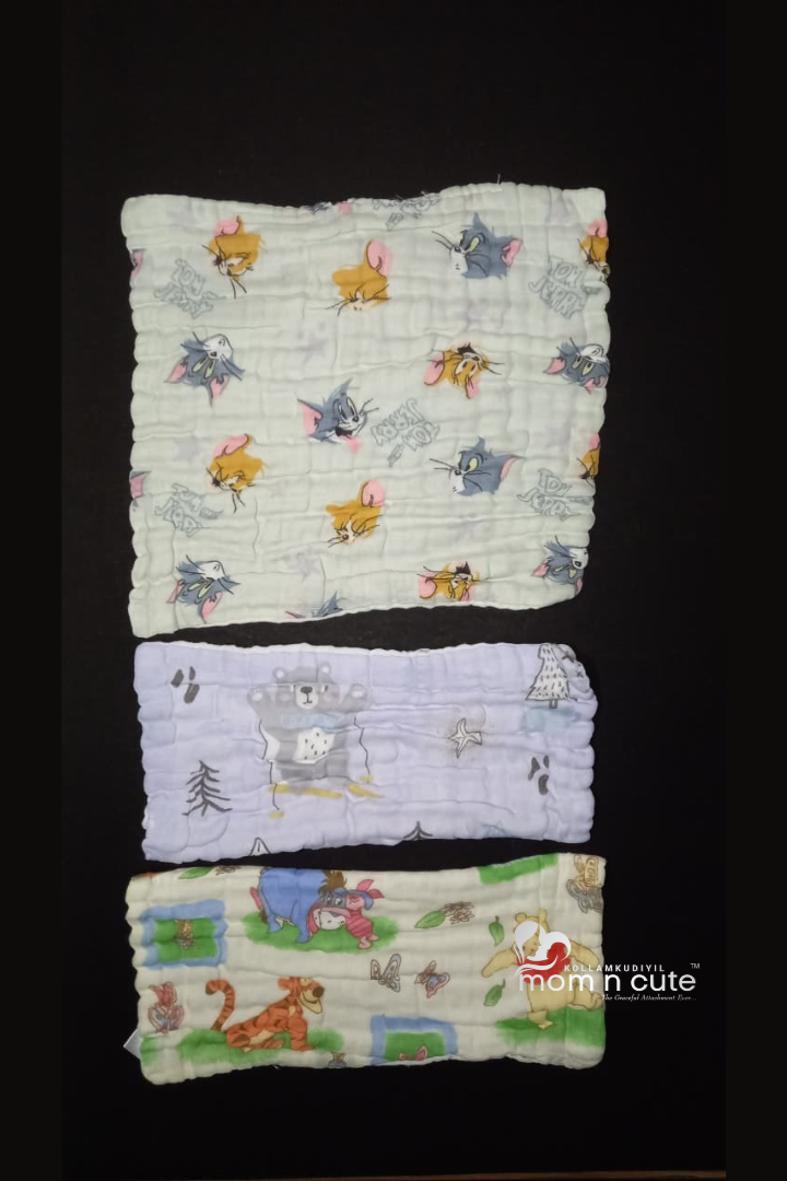 • Package includes : 3 pcs Soft Crinkled Muslin 6 Layer Cotton White Printed, color printed Hankies/Napkins with cute attractive prints