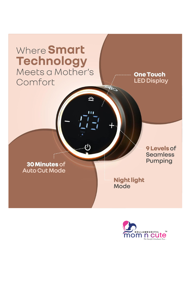• Three Modes, Nine Levels: Each mode is individually designed to support different stages of milk expression. Massage mode helps stimulate let-down by mimicking a baby’s sucking rhythm, lactation mode aids in increasing milk flow, and pumping mode ensures effective extraction. The nine intensity levels in each mode allow customisation based on your comfort and convenience.
