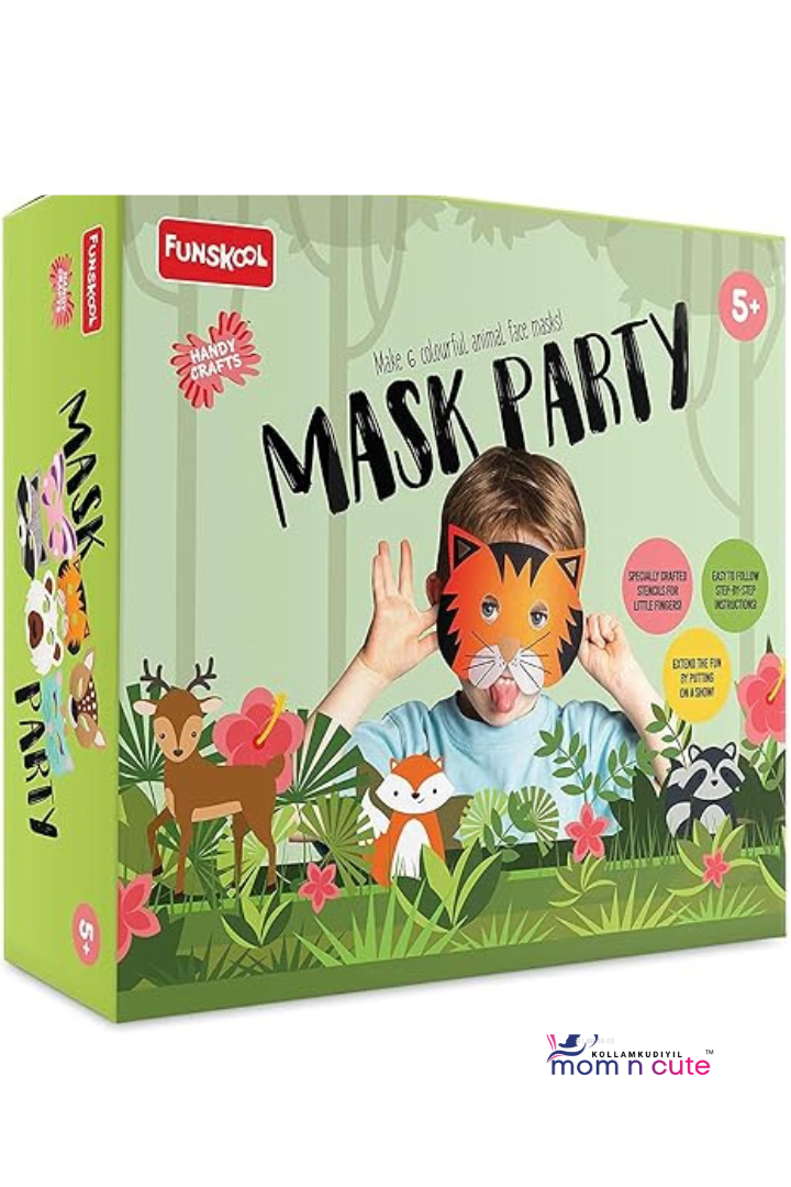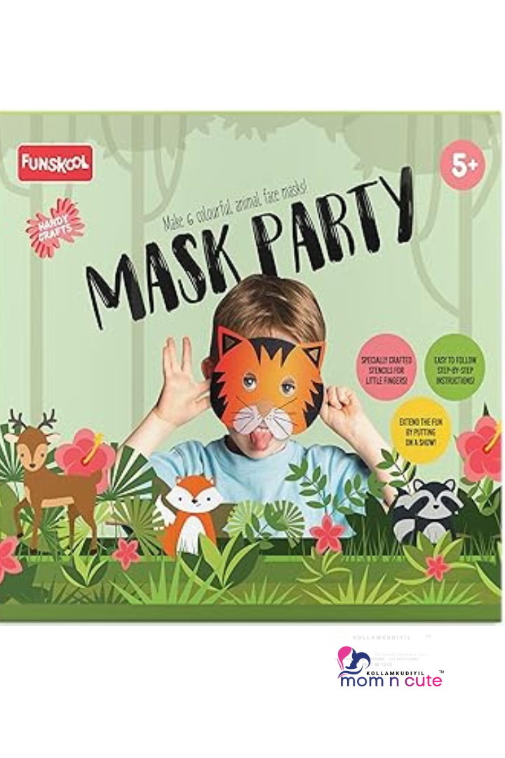 Funskool Handycrafts Mask Party , DIY face masks kids , Make many animal faces , Art and Craft Kit, DIY Kit, Ages 5 Years and Above, Multicolour