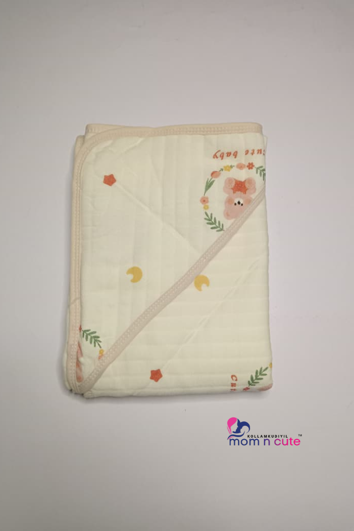 Muslin Hooded Blanket in Ivory color for New Born Baby