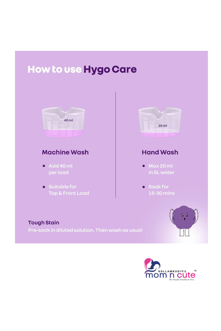 • Safety First: R for Rabbit’s HygoCare Baby Clothes Liquid Detergent is non-toxic with no harsh bleaching agents. They are specially formulated to avoid skin irritation and allergy risks, making them important while the babies are still developing skin defences.