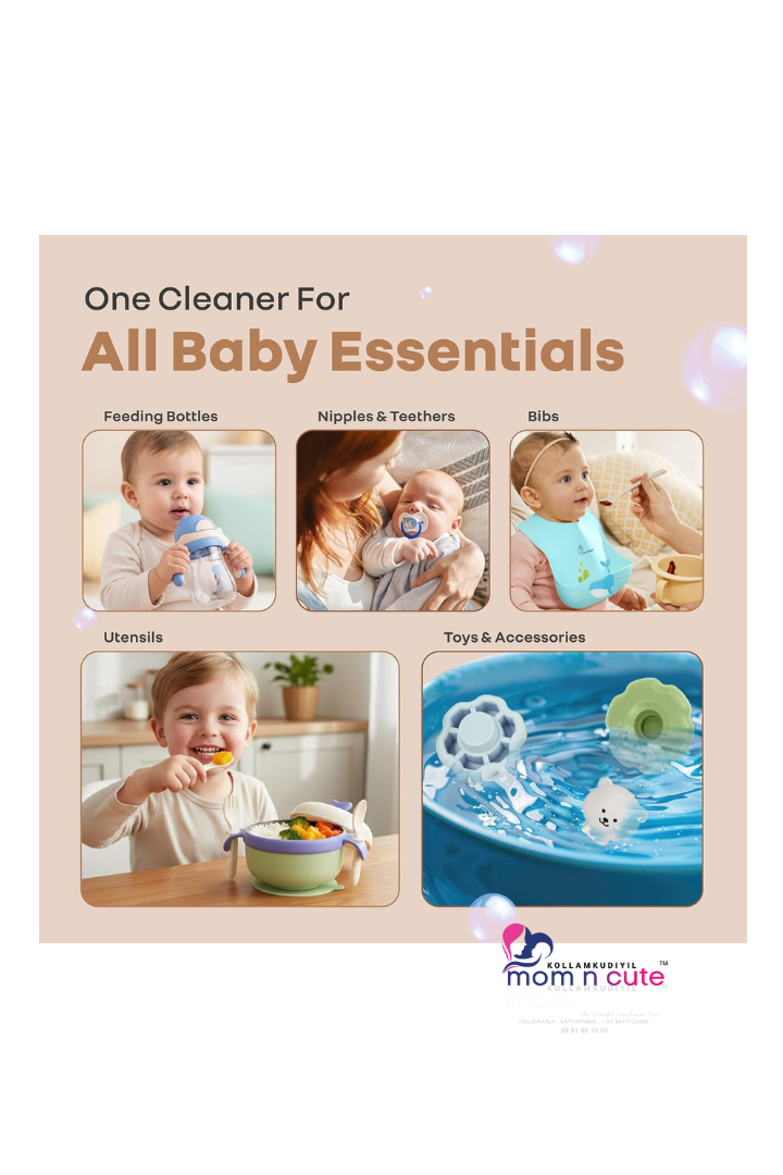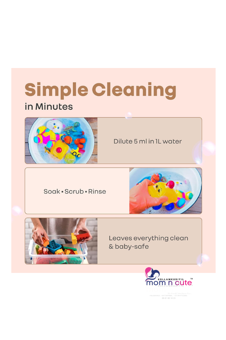 • This cleanser comprises bio-enzymes power with the presence of enzymes like protease, lipase, and amylase. This further helps break down stubborn milk film, grease, and food particles into easy-to-wash components. It also ensures hygiene with every feed without the presence of harmful chemicals.